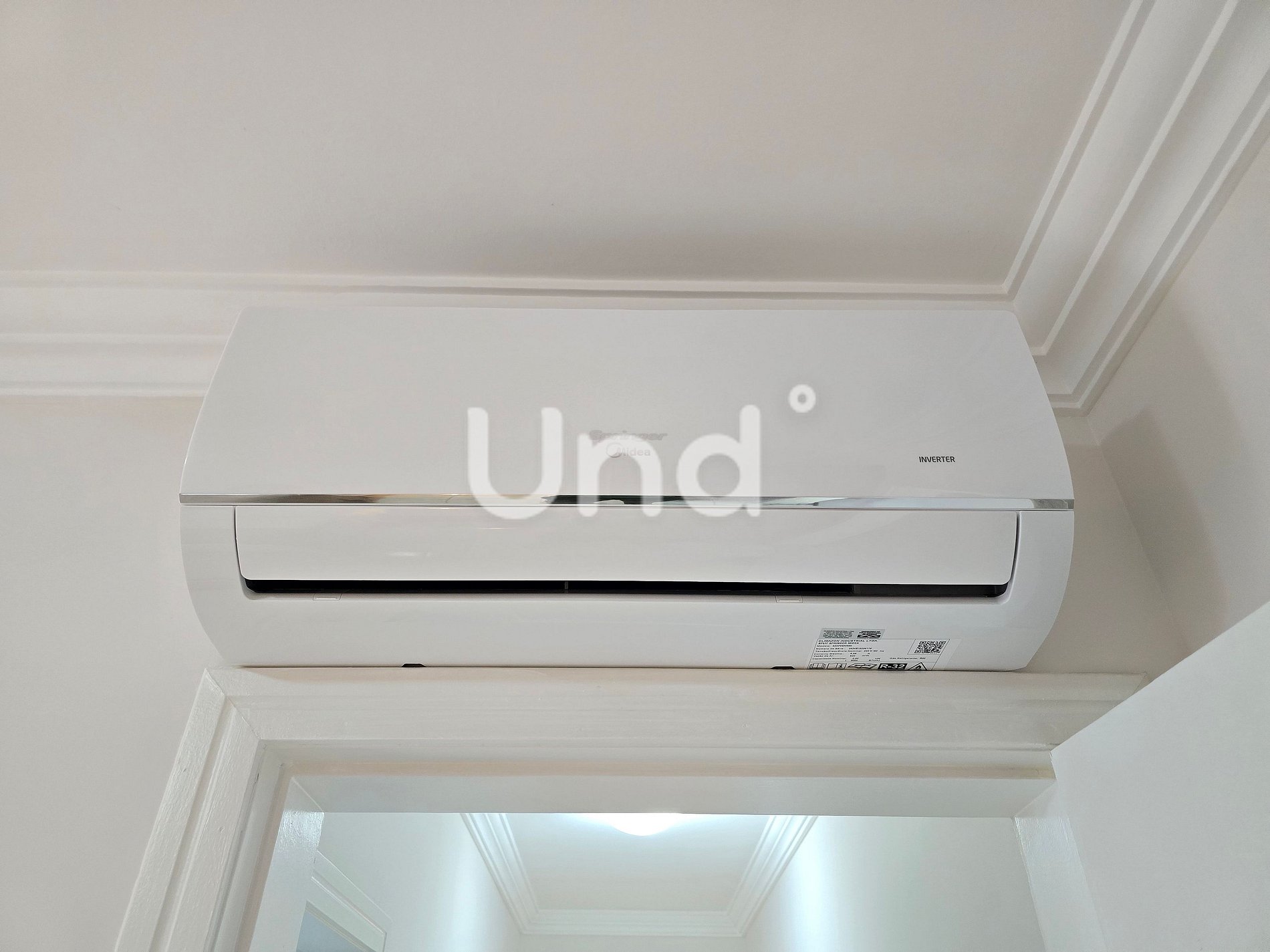 It offers two air-conditioned bedrooms, one being a suite with a private bathroom and a 1 double bed, and a second bedroom with two single beds, a wardrobe, a new split air conditioner, and a full bathroom. Complete bed linens are provided for both rooms for added convenience.