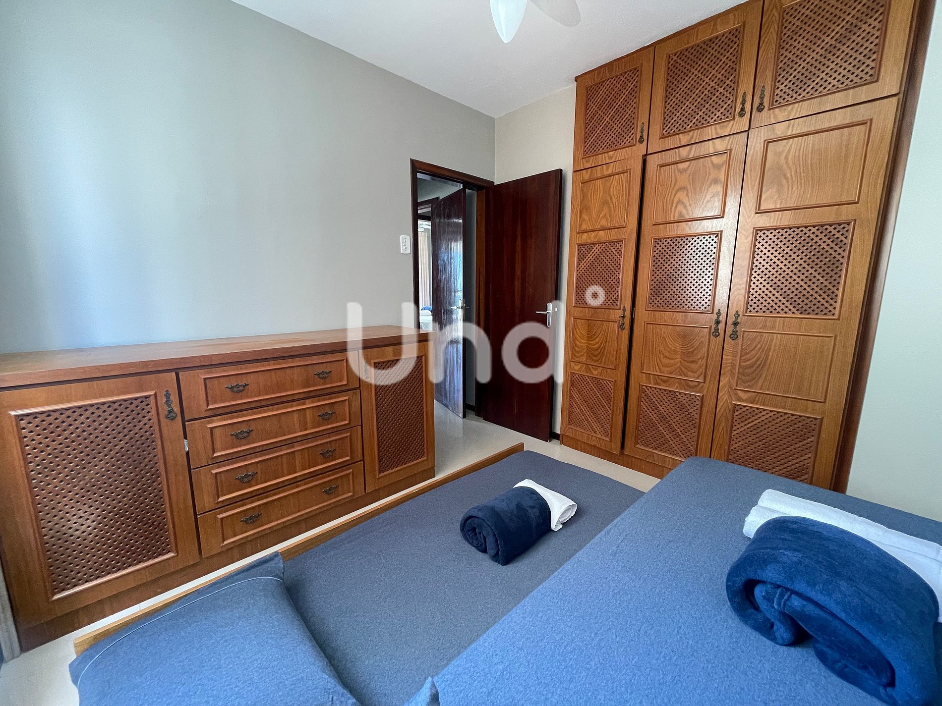 El dormitorio del frente, con vista al mar, tiene puerta al balcón, tiene 01 litera (02 camas individuales), armario con espejo, ventilador de techo, puerta black-out.