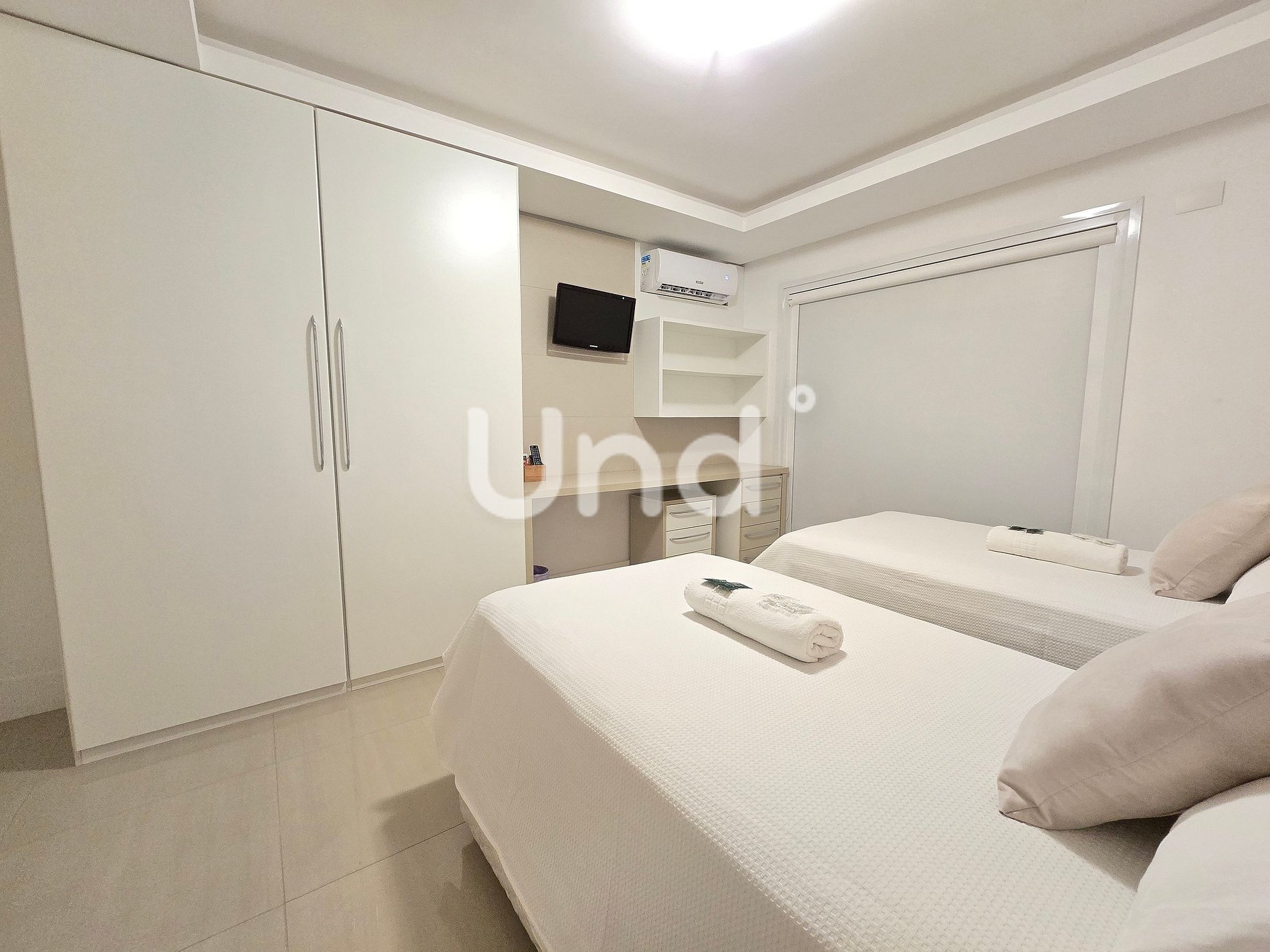 Apartamento 601 frente a la playa en Barra Sul, BC, con 3 habitaciones climatizadas, 2 suites, demi-suite, 3 baños y 1 medio baño. Cocina equipada, sala amplia, Wi‑Fi, parrilla, 2 plazas de garaje y portería 24h. Cama extra para niños y colchón adicional. Se permiten mascotas previa consulta. Ubicación privilegiada en Barra Sul, a 10 km del Aeropuerto de Navegantes.