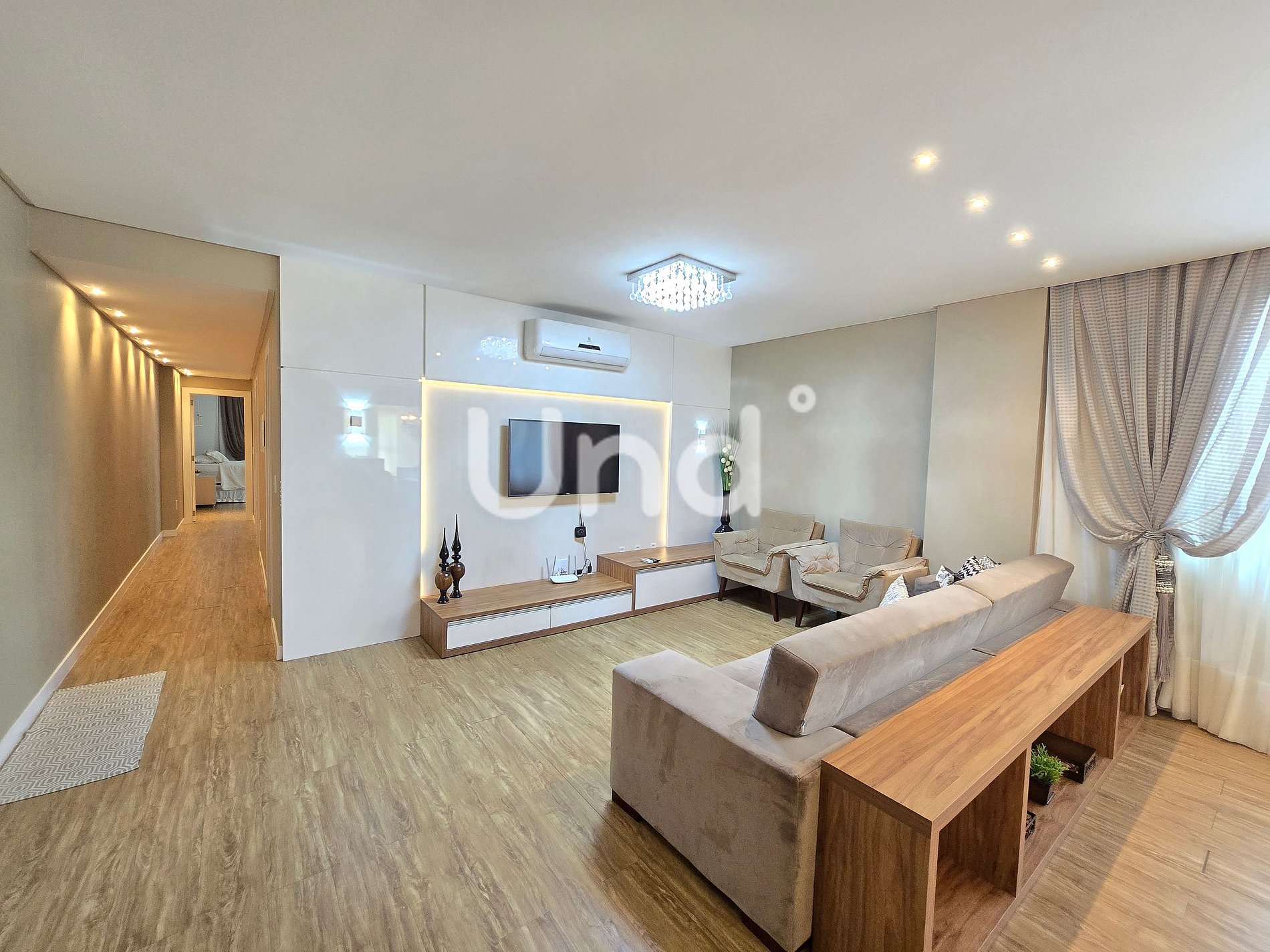 Apartamento amplo de 147 m² com vista lateral para o mar, finamente decorado e climatizado em todos os ambientes. Possui 3 suítes, excelente iluminação natural e localização privilegiada em Meia Praia.